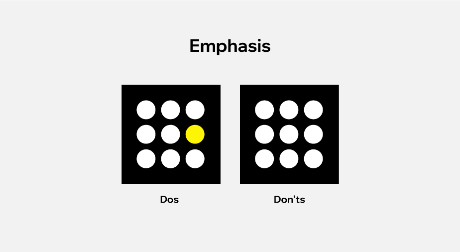 The principle of emphasis reminds us that not all website elements are equal. Whether it’s your logo, a CTA, or an image; if there’s something on your webpage that visitors should notice first, applying the principle of emphasis with the use of bright color, animation, or size will ensure it's the dominant aspect of your composition.Â